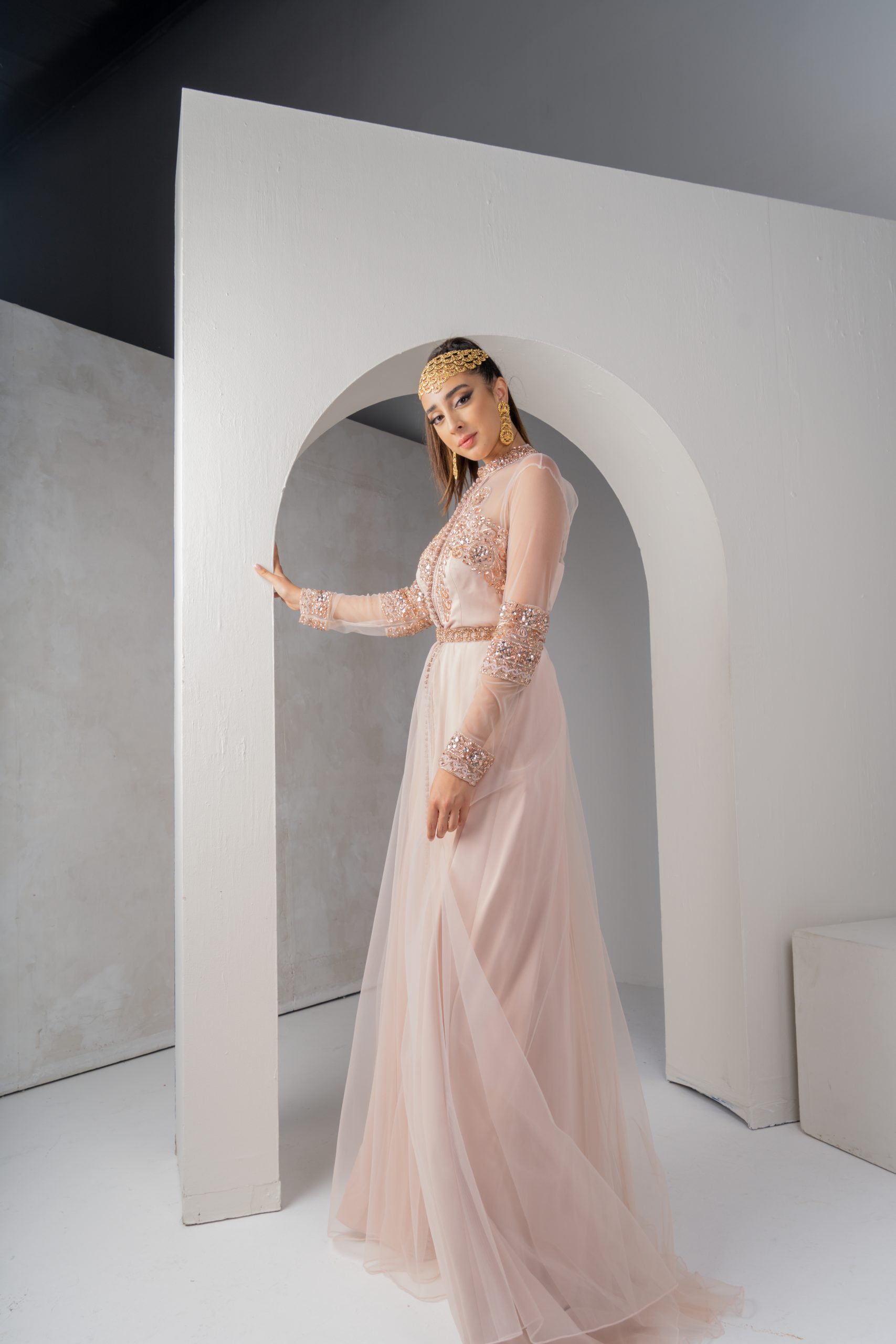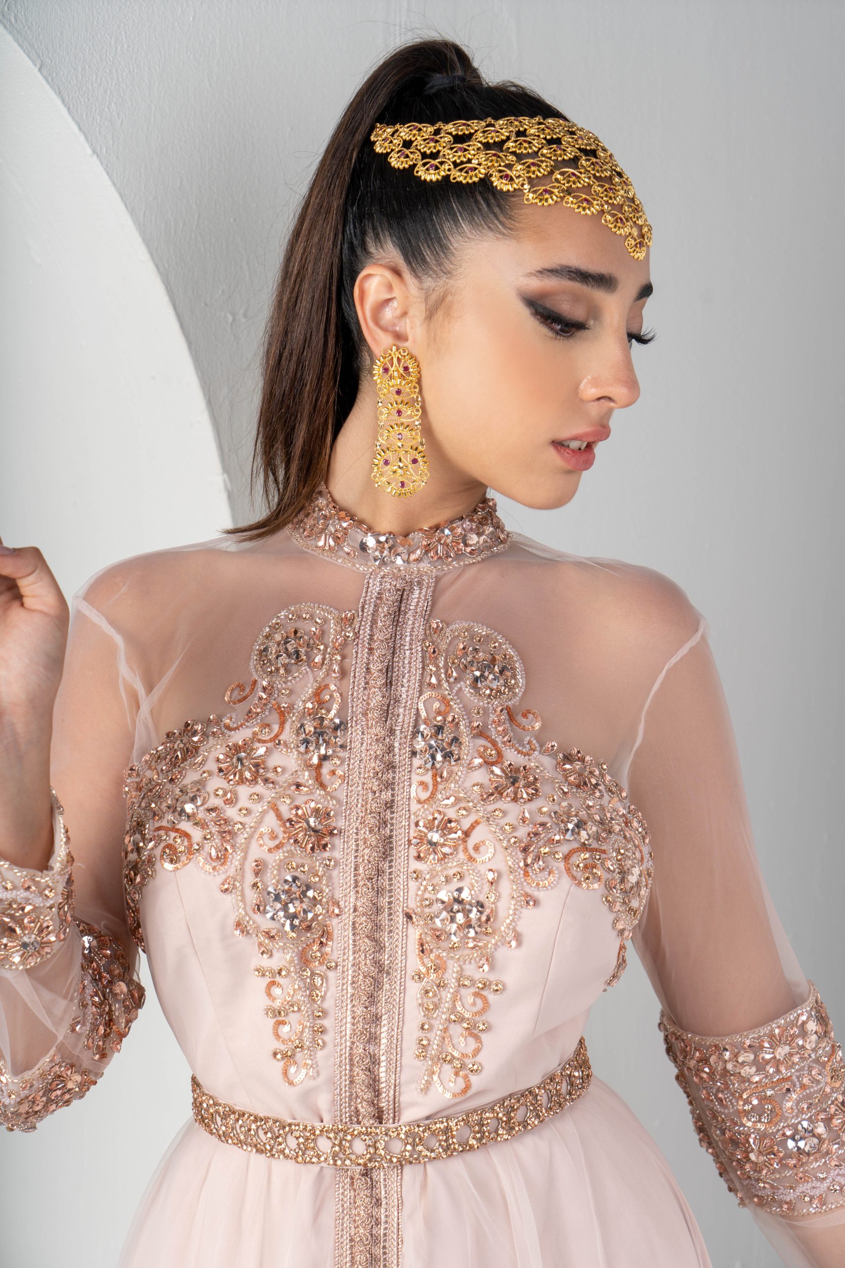 Skin tone sleeves with handmade work details